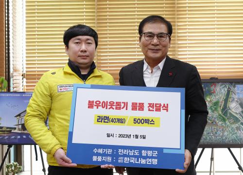 ÇÑÆí, ÇÔÆò±º ÀÚÀ²¹æ¹ü¿¬ÇÕȸ(ȸÀå ±è±¤¼ö)¿Í ÇÔÆò±º ÃßÃâ¹°°¡°ø¿¬ÇÕȸ(ȸÀå ±è¼±µ¿)¿¡¼ °¢ 100¸¸¿ø¾¿ Èñ¸Á2023³ª´®Ä·ÆäÀÎ ÀÌ¿ôµ½±â ¼º±ÝÀ¸·Î ±âŹÇß´Ù.