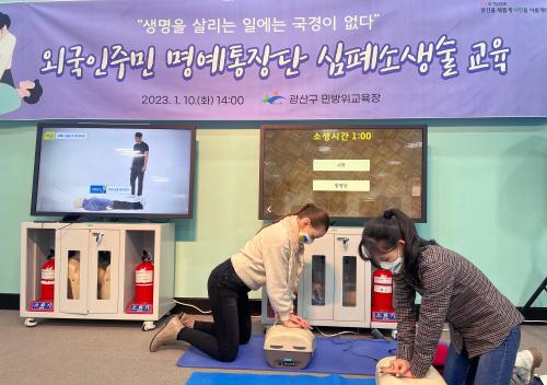 ¿Ü±¹ÀÎÁֹΠ¸í¿¹ÅëÀå´Ü 20¿© ¸íÀÌ Âü¼®ÇÑ À̳¯ ±³À°Àº ÃÖ±Ù ¾ÈÀü»ç°í¿¡ ´ëÇÑ ¿Ü±¹ÀÎÁֹεéÀÇ °æ°¢½ÉÀÌ ³ô¾ÆÁö°í ÀÖ°í ÀÀ±Þóġ¹ý¿¡ ´ëÇÑ °ü½ÉÀÌ Ä¿Áö°í ÀÖ´Â Á¡À» °í·ÁÇØ ¸¶·ÃµÆ´Ù. Àü¹®±³À° °»ç¿Í ÇÔ²² ½ÉÆó¼Ò»ý¼ú°ú ÀÚµ¿½ÉÀåÃæ°Ý±â »ç¿ë¹ý, ÀÀ±Þóġ ¹æ¹ý µî ½ÇÁ¦ »óȲÀ» °¡Á¤ÇÑ Ã¼Çè À§ÁÖÀÇ ±³À°ÀÌ ÁøÇàµÆ´Ù.