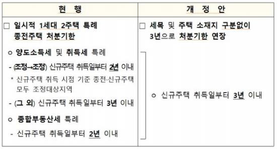 ÀϽÃÀû 2ÁÖÅà Ư·Ê Á¦µµ´Â 1¼¼´ë°¡ 1ÁÖÅÃÀ» º¸À¯ÇÏ¸é¼ ÀÌ»ç µîÀ» À§ÇØ ½Å±ÔÁÖÅÃÀ» ÃëµæÇØ ÀϽÃÀûÀ¸·Î 1¼¼´ë 2ÁÖÅÃÀÌ µÈ °æ¿ì, Á¾ÀüÁÖÅÃÀ» óºÐ±âÇÑ ³» ¾çµµÇÏ¸é ¾çµµ¼¼¡¤Ãëµæ¼¼¡¤Á¾ºÎ¼¼ °ü·Ã 1¼¼´ë 1ÁÖÅà ÇýÅÃÀ» Àû¿ëÇÏ´Â Á¦µµÀÌ´Ù. Áö±Ý±îÁö Á¾ÀüÁÖÅà óºÐ±âÇÑÀº ½Å±ÔÁÖÅà ÃëµæÀϺÎÅÍ 2³â À̳»¿´´Ù.