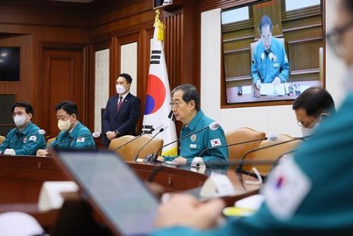 »çÁø=ÇÑ´ö¼ö ±¹¹«ÃѸ®°¡ 20ÀÏ Á¤ºÎ¼­¿ïû»ç¿¡¼­ ¿­¸° Äڷγª19 Áߴ뺻 ȸÀÇ¿¡¼­ ¹ß¾ðÇϰí ÀÖ´Ù.(»çÁø=±¹¹«Á¶Á¤½Ç)