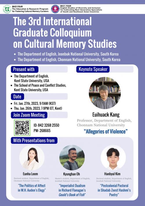 À̹ø ±¹Á¦ ÄÝ·ÎŰ¿òÀº Àü³²´ëÇб³ ¿µ¾î¿µ¹®Çаú BK21±³À°¿¬±¸´Ü°ú ÀüºÏ´ëÇб³ ¿µ¾î¿µ¹®Çаú BK21±³À°¿¬±¸ÆÀÀÌ °øµ¿ ÁÖÃÖÇÏ°í ¹Ì±¹ ÄËÆ®ÁÖ¸³´ëÇб³ ¿µ¹®°ú¿Í ÄËÆ®ÁÖ¸³´ëÇб³ ÆòÈ¿Í ºÐÀïÇкΰ¡ °øµ¿ Âü¿©ÇÑ´Ù.