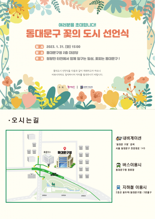 ÀÌÇÊÇü µ¿´ë¹®±¸Ã»ÀåÀº ¡°²ÉÀÇ µµ½Ã ¼±¾ðÀ» ½ÃÀÛÀ¸·Î ¾îµð¼³ª ½±°Ô ²É°ú ³ª¹«¸¦ Áñ±æ ¼ö ÀÖ´Â »ýȰ ¼Ó ³ìÁö°ø°£À» Á¶¼ºÇÏ¿©, »ç°èÀý ³»³» Çâ±â·Ó°í ÄèÀûÇÑ µµ½Ã¸¦ ¸¸µé°Ú´Ù.¡±¶ó°í ÀÇÁö¸¦ ÇÇ·ÂÇß´Ù.