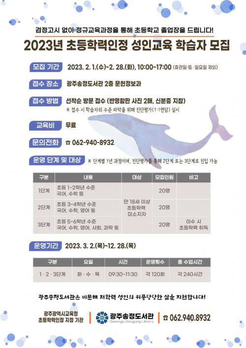 2023Çг⵵ ÃʵîÇзÂÀÎÁ¤ ¼ºÀα³À°Àº 1~3´Ü°è·Î ¿î¿µµÇ¸ç °¢ ´Ü°èº°·Î 20¸í¾¿ ÃÑ 60¸íÀ» ¸ðÁýÇÑ´Ù. ÇØ´ç ±³À°Àº ÃʵîÇб³¸¦ Á¹¾÷ÇÏÁö ¸øÇÑ ¸¸ 18¼¼ ÀÌ»ó ºñ¹®ÇØ ¹× ÀúÇз ¼ºÀÎÀ» ´ë»óÀ¸·Î ÇÑ´Ù.