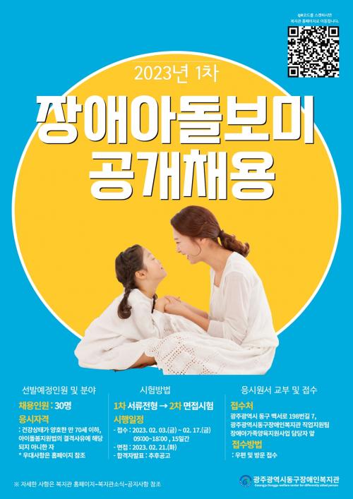[½Åµ¿¾Æ¹æ¼Û=³²À¯¼®±âÀÚ]±¤ÁÖ±¤¿ª½Ãµ¿±¸Àå¾ÖÀκ¹Áö°ü(°üÀå Àå¼¼Á¾)Àº Àå¾Ö¾Æ°¡Á· ¾çÀ°Áö¿ø»ç¾÷¿¡ Âü¿©ÇÒ ¡®Àå¾Ö¾Æ µ¹º¸¹Ì¡¯¸¦ °ø°³ ¸ðÁýÇÑ´Ù°í ¹àÇû´Ù.