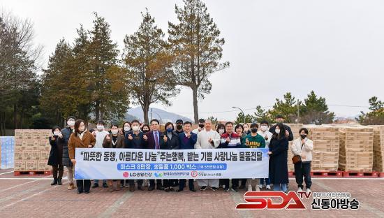 À̳¯ ¡®(»ç)Èñ¸ÁÀ»³ª´©´Â»ç¶÷µé¡¯¿¡¼´Â LG»ýȰ°Ç°°ú ³ó¾îÃÌ»ó»ýÇù·Â±â±Ý¿¡¼ ÈÄ¿ø ¹ÞÀº ¹æ¿ª¸¶½ºÅ© 8¸¸Àå°ú ¼¤Çª․Ä¡¾à µî »ýÇÊǰ 1000¹Ú½º·Î ¾à 1¾ï5õ¸¸ ¿ø »ó´çÀÇ ¹°Ç°À» Àü´ÞÇß´Ù.