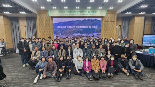 ¼ö¿ø½Ã´Â Áö¼Ó°¡´É¹ßÀü¸ñÇ¥ ÀÌÇà »óȲÀ» Á¡°ËÇϱâ À§ÇØ Æò°¡ÁöÇ¥¿Í ÃßÁø°úÁ¦¸¦ ¸¶·ÃÇß°í, ¼ö¿ø½ÃÁö¼Ó°¡´É¹ßÀüÇùÀÇȸ¿¡ Âü¿©ÇÑ °¢°è°¢Ãþ ½Ã¹Î 180¿© ¸íÀÌ ¸Å³â ÀÌÇà »óȲÀ» Á¡°ËÇϰí ÀÖ´Ù.