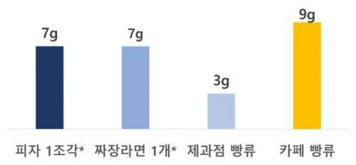 Á¶»ç´ë»ó 20°³ Á¦Ç°Àº °¢ Ä«ÆäÀÇ ´ëÇ¥ Á¦Ç°ÀÎ µµ³Ó, ÄÉÀÌÅ©, Å©·ç¾Æ»ó µîÀ¸·Î Á¦Ç°º° Å©±â¿Í ¾ç(51g¡268g)ÀÌ ´Ù¾çÇØ »§·ùÀÇ 1ȸ ¼·ÃëÂü°í·® 70gÀ» ±âÁØÀ¸·Î ÇÔ·®À» È®ÀÎÇÑ °á°ú Æ®·£½ºÁö¹æÀº Æò±Õ 0.3g(ÃÖ¼Ò 0.1g¡ÃÖ´ë 0.6g), Æ÷ÈÁö¹æÀº Æò±Õ 9g(ÃÖ¼Ò 4g¡ÃÖ´ë 16g)À̾ú´Ù.