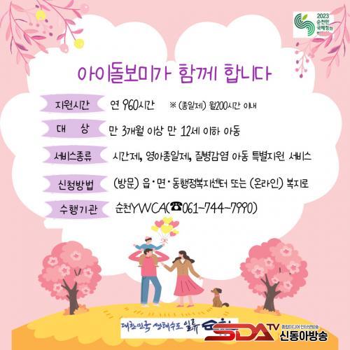 ¾ÆÀ̵¹º½¼ºñ½º´Â ÁÖ¼ÒÁö À¾¸éµ¿ ÇàÁ¤º¹Áö¼¾ÅÍ¿¡ Á¤ºÎÁö¿ø±ÝÀ» ½ÅûÇÑ ÈÄ, (»ç)¼øÃµYWCA(061-744-7990)·Î ¾ÆÀ̵¹º½¼ºñ½º¸¦ ¿äûÇÏ¸é µÈ´Ù.
