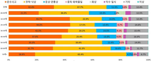 (ûÀå³â) 10´ë~ 40´ë´Â ¿î¼ö»ç°í·Î ÀÎÇÑ ¼Õ»óÀÌ ¸¹¾Ò´Ù. ƯÈ÷, 30´ë´Â ±³Åë»ç°í ¼Õ»ó °æÇèÀÌ ¸¹¾Ò°í(1,000¸í Áß 7.9¸í), 40´ë´Â 1¸¸ ¸í Áß 5.3¸íÀÌ ÀÚÇØ, ÀÚ»ì·Î ÀÀ±Þ½ÇÀ» ¹æ¹®ÇÏ¿´´Ù. 50´ë´Â 1¸¸ ¸í Áß 43.2¸íÀÌ »ê¾÷ÀçÇØ¸¦ °æÇèÇÏ´Â µî Á÷¾÷°ú °ü·ÃµÈ ¼Õ»óÀÌ ¸¹¾Ò´Ù.