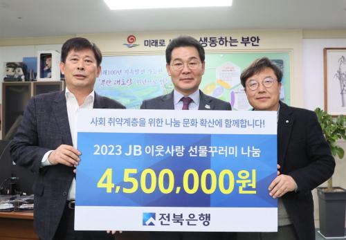 À̹ø ±âŹÀº ÀüºÏÀºÇàÀÇ 2023 ¡®JBÀÌ¿ô»ç¶û ¼±¹°²Ù·¯¹Ì ³ª´® Çà»ç¡¯ ÃßÁøÀ¸·Î ÀÌ·ç¾îÁ³À¸¸ç, Áö¼ÓÀûÀÎ ¹°°¡»ó½Â ¹× °æ±âħü ¿µÇâÀ¸·Î ¾î·Á¿òÀ» °Þ°í ÀÖ´Â °ü³» Àú¼Òµæ°èÃþÀÇ ¾î·Á¿òÀ» °°ÀÌÇϰíÀÚ Áï¼®¹ä, ¶ó¸é, Ä©¼Ö µî 10Á¾ÀÇ ½Äǰ ¹× Àâȸ¦ ÀüºÏÀºÇà Áö¿ª»ç¶û ºÀ»ç´Ü¿øµéÀÌ Á÷Á¢ ¼±¹° ²Ù·¯¹Ì·Î ¸¸µé¾î Àü´ÞÇÏ´Â ¹æ½ÄÀ¸·Î ÁøÇàµÆ´Ù.
