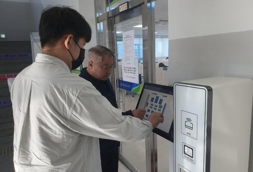 ÇöÀç ¹®ÈÁ¤º¸µµ¼°ü ¿¶÷½Ç ÀÔ±¸¿¡´Â ÀÚ¸® ¿¹¾àÀ» À§ÇÑ ÅÍÄ¡½ºÅ©¸° ¹æ½ÄÀÇ Å°¿À½ºÅ©°¡ ¼³Ä¡µÈ »óÅÂÀÌ´Ù.