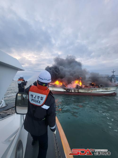 ÇöÀç ÈÀç¼±¹Ú AÈ£´Â ¼±Ã¼ ¿ÜºÎ¿¡ ºÒ²É°ú ÇÔ²² ¸¹Àº ¿¬±â°¡ ¹ß»ýÇϰí ÀÖ¾î °æºñÇÔÁ¤ 6ôÀÌ µ¿¿øµÅ ¼ÒÈ Àåºñ¸¦ ÀÌ¿ëÇØ ÈÀçÁø¾Ð¿¡ ³ª¼°í ÀÖ´Ù.