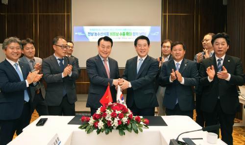 º£Æ®³²À» ¹æ¹® ÁßÀÎ ±è¿µ·Ï Àü¶ó³²µµÁö»ç´Â 23ÀÏ(ÇöÁö ½Ã°£) ȣġ¹Î ¶óº§¶ó »çÀ̰ø È£ÅÚ¿¡¼ Çѱ¹½Äǰ À¯Åë Àü¹®±â¾÷À¸·Î 148°³ ¸ÅÀåÀ» °®Ãá K&K ±Û·Î¹ú Æ®·¹À̵ù(ȸÀå °í»ó±¸)°ú Àü³² ³ó¼ö»ê½Äǰ ¼öÃâ È®´ë ¾÷¹«Çù¾àÀ» Çß´Ù.