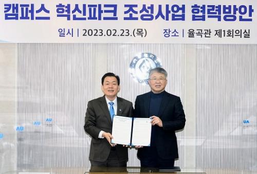 ¼ö¿ø½Ã¿Í ¾ÆÁÖ´ëÇб³´Â 23ÀÏ ¾ÆÁÖ´ë À²°î°ü¿¡¼ ¡®Ä·ÆÛ½º Çõ½ÅÆÄÅ© Á¶¼º»ç¾÷ Çù·Â¹æ¾È Çù¾à¡¯À» ü°áÇϰí,¡®Ä·ÆÛ½º Çõ½ÅÆÄÅ© Á¶¼º »ç¾÷¡¯ÀÇ Ã¹ ´ÜÃ߸¦ ³¢¿ü½À´Ï´Ù.