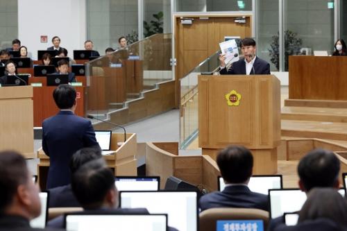 ´ÙÀ½À¸·Î ÀÌÈ«±Ù ÀÇ¿øÀº ±¹ÅäºÎÀÇ ¡®Á¦6Â÷ °øÇ×°³¹ß Á¾ÇÕ°èȹ °í½Ã¹®¡¯À» ¼³¸íÇÏ¸ç ¡°°í½Ã¹®¿¡¼ °æ±â±¹Á¦°øÇ׿¡ ´ëÇÑ ³»¿ëÀ» »ìÆìº¸¸é, ÁöÀÚü°£ ÇùÀÇ »óȲ µî Á¦¹Ý ÃßÁø¿©°ÇÀ» Á¾ÇÕ°í·Á ÈÄ Ãß°¡ °ËÅäÇÑ´Ù´Â ³»¿ëÀ¸·Î¸¸ ÀûÇôÀÖ´Ù¡±¸é¼ ¡°¼ö¿ø½ÃÀÇ °æ±â³²ºÎ ±¹Á¦°øÇ׿¡ ´ëÇÑ °ÇÀÇ ÀÌÈÄ¿¡µµ °èȹ¿¡ ¹Ý¿µµÇÁö ¾ÊÀº °ÍÀº »ç¾÷ÀÇ Å¸´ç¼ºÀÌ ¾ø´Ù´Â °ÍÀÌ ¾Æ´Ï³Ä¡±¸ç °æ±â±¹Á¦°øÇ×ÀÇ Å¸´ç¼º ºÎºÐÀ» ¾ð±ÞÇß´Ù.