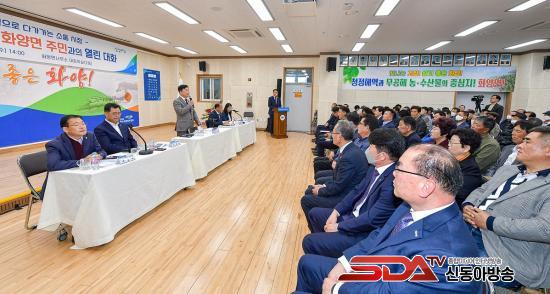 ¿©¼ö½Ã¿¡ µû¸£¸é Ⱦç¸é»ç¹«¼Ò¿¡¼ ¿¸° ù ¹øÂ° ½Ã¹Î°úÀÇ ´ëÈ¿¡ Á¤ ½ÃÀåÀº ÀÚ»ý´Üü, ÁֹδëÇ¥, ³ó‧¾î¾÷ÀÎ µî ½Ã¹Î 150¿© ¸í°ú Áï¼® ÁúÀÇÀÀ´äÀ» ÅëÇØ ¼ÒÅëÇß´Ù.