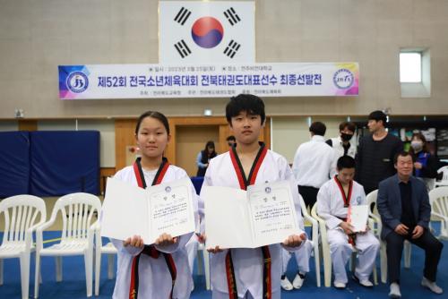 Áö³ 3¿ù 25ÀÏ ÀüÁÖºñÀü´ëÇб³ ¹Ì·¡°ü¿¡¼ ¿¸° Á¦52ȸ Àü±¹¼Ò³âüÀ°´ëȸ ÀüºÏűǵµ´ëÇ¥¼±¼ö ÃÖÁ¾¼±¹ßÀü °Ü·ç±â +54kg±Þ¿¡ ÃâÀüÇÑ °Á¤È Çлý°ú °Ü·ç±â +58kg±Þ¿¡ ÃâÀüÇÑ ÀÓÇü°ü ÇлýÀÌ °¢°¢ 1À§¸¦ Â÷ÁöÇß´Ù.