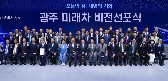° ½ÃÀåÀº ÀÌ¾î ¡°³»ÀÏÀÇ ±âȸ¸¦ ÁغñÇÏ°í ±¤ÁÖÀÇ ¹Ì·¡ ¸Ô°Å¸®¸¦ È®½ÇÈ÷ ¸¸µé°Ú´Ù¡±¸ç ¡°±¤ÁÖ ¹Ì·¡Â÷ ±¹°¡»ê´ÜÀº ¡®Çõ½Å, ¿¬°è, ½ÇÁõ¡¯ 3°¡Áö Ű¿öµå¸¦ µé°í ³ª°¡°Ú´Ù¡±°í °Á¶Çß´Ù.