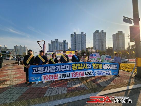 ƯÈ÷ ¡®¼ÃµÀÇ º½, ±¤¾ç º¢²É¿£µù¡¯ Çà»çÀå¿¡¼´Â Çà»ç ÁÖ°üÀÎ ±¤¾çJC(ȸÀå ¾çÁ¤ÈÆ) ȸ¿øµé°ú Á¤ÀÎÈ ±¤¾ç½ÃÀå, ¼¿µ¹è ±¤¾ç½ÃÀÇȸ ÀÇÀå, ½ÃÀÇ¿ø, ½Ã Á÷¿ø µî 30¿© ¸íÀÌ Âü¼®ÇÑ °¡¿îµ¥ ¡®°íÇâ»ç¶û±âºÎÁ¦ ±¤¾ç½Ã¿Í ÇÔ²² ÇØÁÖ¼¼¿ä¡¯¶ó´Â ½½·Î°ÇÀ¸·Î °íÇâ»ç¶û±âºÎÁ¦ µ¿ÂüÀ» À§ÇØ ¹Î°üÀÌ ÇÔ²² Ä·ÆäÀÎÀ» ½Ç½ÃÇØ Àǹ̸¦ ´õÇß´Ù.