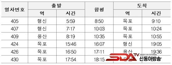 KTX´Â ÃàÁ¦ ±â°£ ¿ë»ê¿ª Ãâ¹ß ±âÁØ ÇÏÇ༱ ÇÏ·ç 3ȸ(6½Ã28ºÐ, 7½Ã46ºÐ, 8½Ã19ºÐ), ÇÔÆò¿ª Ãâ¹ß ±âÁØ »óÇ༱ ÇÏ·ç 3ȸ(16½Ã7ºÐ, 17½Ã11ºÐ, 18½Ã15ºÐ)¾¿ ¿îÇàµÈ´Ù.