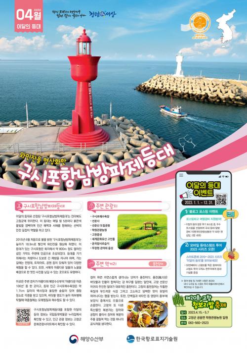 4ÀÏ °íⱺ¿¡ µû¸£¸é ÇØ¾ç¼ö»êºÎ´Â 4¿ù ÀÌ´ÞÀÇ µî´ë·Î °íⱺ¿¡ À§Ä¡ÇÑ ¡®±¸½ÃÆ÷Ç× ³²¹æÆÄÁ¦µî´ë¡¯¸¦ ¼±Á¤Çß´Ù. µî´ë´Â ¸ÅÀÏ ¹ã 5Ãʸ¶´Ù ºÓÀº»ö ºÒºûÀ» ±ôºýÀ̸ç ÀÎ±Ù ÇØ¿ª°ú ¼Çظ¦ Ç×ÇØÇÏ´Â ¼±¹ÚÀÇ ¾ÈÀü ±æÀâÀÌ ¿ªÇÒÀ» Çϰí ÀÖ´Ù.