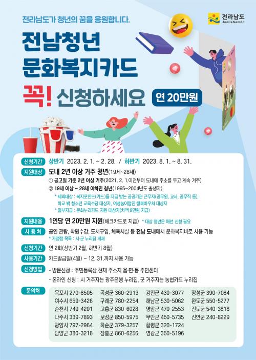 ¡®Àü³²Ã»³â ¹®Èº¹ÁöÄ«µå Áö¿ø»ç¾÷¡¯Àº Àü¶ó³²µµ ³» °ÅÁÖÇϴ û³âÀÇ ¹®È»ýȰ ÇâÀ¯ ¹× ÀÚ±â°è¹ß ±âȸ¸¦ Á¦°øÇϱâ À§ÇØ ¹®Èº¹Áöºñ ¿¬ 20¸¸ ¿øÀ» Áö¿øÇÏ´Â »ç¾÷ÀÌ´Ù.
