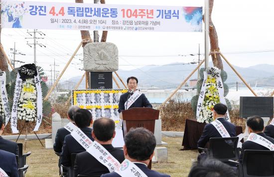 À̸¦ ±â¸®±â À§ÇØ 1981³â, ÀÌ¿µ½Ä ¼±»ýÀ» ºñ·ÔÇÑ Ã»³âµéÀÌ ¿µ³óȸ¸¦ Á¶Á÷ÇØ °Áø4.4µ¶¸³¸¸¼¼¿îµ¿À» ±â³äÇϱâ À§ÇÑ ³íÀǸ¦ ½ÃÀÛÇß°í, 1991³â ¿µ³óȸ°¡ Áß½ÉÀÌ µÇ¾î ³²Æ÷¸¶À»¿¡ ±â³äºñ¸¦ °Ç¸³ ÈÄ, °ÁøÃ»³âÀ¯µµÈ¸, °Áø¹®Ç忬±¸È¸°¡ ¶æÀ» °°ÀÌÇÏ¿© Ã߸ðÁ¦¸¦ ¿¾î¿À´Ù, 2005³âºÎÅÍ °Áø¹®È¿ø°ú ¿¬°èÇØ, Áö±Ý±îÁö ±â³ä½ÄÀ» °³ÃÖÇØ¿À°í ÀÖ´Ù.