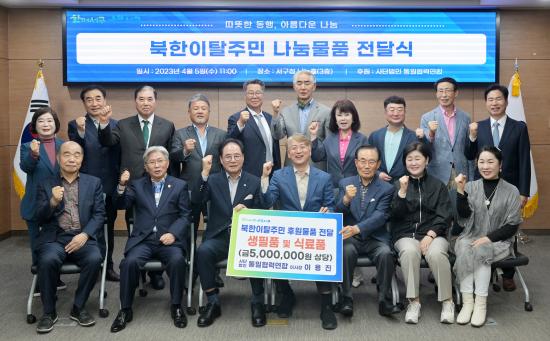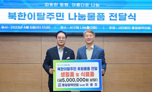 [½Åµ¿¾Æ¹æ¼Û=³²À¯¼®±âÀÚ]±¤ÁÖ ¼±¸(±¸Ã»Àå ±èÀ̰)´Â 5ÀÏ ¿ÀÀü ¼±¸Ã» 3Ãþ ³ª´®È¦¿¡¼ »ç´Ü¹ýÀÎ ÅëÀÏÇù·Â¿¬ÇÕ(ÀÌ»çÀå ÀÌ¿ëÁø)À¸·ÎºÎÅÍ ºÏÇÑÀÌÅ»ÁֹΠÁ¤ÂøÁö¿øÀ» À§ÇÑ »ýÇÊǰ ¹× ½Ä·áǰ(500¸¸¿ø »ó´ç)À» Àü´Þ¹Þ¾Ò´Ù.