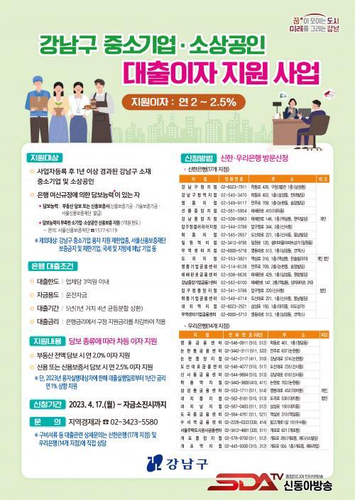 [½Åµ¿¾Æ¹æ¼Û °­³²=À̽ŵ¿±âÀÚ]°­³²±¸Ã»Àå Á¶¼º¸íÀº °í±Ý¸®, °í¹°°¡, °íȯÀ²·Î ÀÎÇÑ °æ±âħü·Î ¾î·Á¿òÀ» °Þ°í ÀÖ´Â Áß¼Ò±â¾÷°ú ¼Ò»ó°øÀÎÀ» À§ÇØ 17ÀϺÎÅÍ ½Å±Ô´ëÃâ¿¡ ´ëÇÑ ÀÌÀÚ¸¦ ¿¬ 2~2.5% º¸ÀüÇØÁØ´Ù.