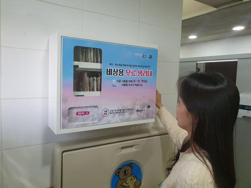 ¡®¿©¼º»ý¸®¿ëǰ ¹«·á ÀÚÆÇ±â ¼³Ä¡¡¯´Â »ý¸®¿ëǰÀ»¡®°ø°øÀ硯·Î ÀνÄÇÏ´Â ½Ã¹ÎÀǽĿ¡ ºÎÀÀÇØ ¿©¼º¡¤Ã»¼Ò³âµéÀÌ ¿¹»óÄ¡ ¸øÇÑ »óȲ¿¡ ºÒÆíÇÏÁö ¾Ê°Ô »ý¸®¿ëǰÀ» »ç¿ëÇÒ ¼ö ÀÖµµ·Ï ÃßÁøµÇ´Â »ç¾÷ÀÌ´Ù.