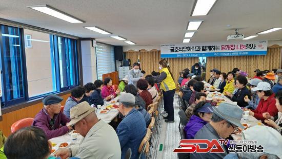 Çà»ç¿¡ Âü¼®ÇÑ ¾î¸£½ÅµéÀº ¡°Æò¼Ò ³¢´Ï¸¦ °Å¸¦¶§µµ ¸¹¾Ò´Âµ¥ ¸ÀÀÖ´Â °úÀϰú ´ßÀ°°³ÀåÀ» ÁغñÇÏ´À¶ó ¼ö°í Çϼ̰í Áñ°Å¿î ½Ã°£ÀÌ µÇ¾ú´Ù¡±°í ´ö´ãÀ» ÇØ Áֽøç Çà»ç ÁÖÃÖÃø¿¡ °¨»çÀÇ ¸¶À½À» ÀüÇß´Ù.