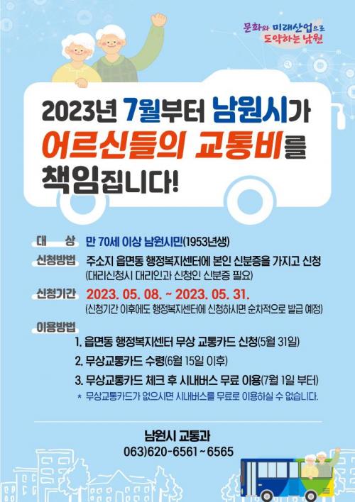 ¸¸ 70¼¼ÀÌ»ó ¾î¸£½ÅÀÇ °æ¿ì ±³ÅëÄ«µå¸¦ ÀÌ¿ëÇØ ½Ã³»¹ö½º¸¦ ¹«·á·Î ÀÌ¿ëÇÒ ¼ö ÀÖÀ¸¸ç 5¿ù 8ÀϺÎÅÍ 5¿ù 31ÀϱîÁö ½ÅºÐÁõÀ» ÁöÂüÇÏ¿© °¡±î¿î À¾¸éµ¿ ÇàÁ¤º¹Áö¼¾Å͸¦ ¹æ¹®ÇÏ¸é µÈ´Ù.