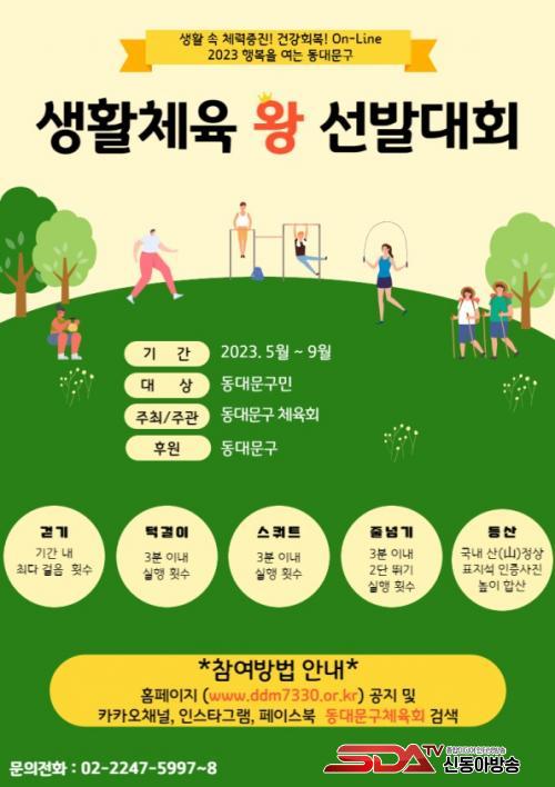 µ¿´ë¹®±¸Ã¼À°È¸ ÁÖ°üÀ¸·Î ÁøÇàµÇ´Â ¡®»ýȰüÀ°¿Õ ¼±¹ß´ëȸ¡¯´Â 3³â°¡·® Áö¼ÓµÈ Äڷγª19·Î ½ÅüȰµ¿ÀÌ °¨¼ÒÇÑ ±¸¹ÎµéÀÇ Ã¼·Â°ú °Ç°À» ÁõÁøÇϱâ À§ÇØ ±âȹµÆ´Ù. ¼±¹ß ±â°£Àº 5¿ùºÎÅÍ 9¿ù±îÁö·Î, Àü¹Ý±â(5~7¿ù)¿Í ÈĹݱâ(8~9¿ù) 2Â÷·Î ³ª´² ¼±¹ßÇÑ´Ù. Âü¿©´ë»óÀº µ¿´ë¹®±¸¹ÎÀÌ´Ù.