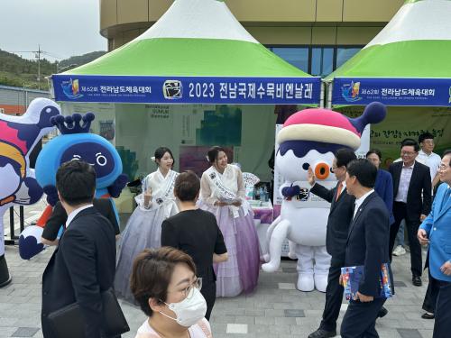 ¿ÃÇØ ¼¼ ¹øÂ°¸¦ ¸Â´Â ¡®2023 Àü³²±¹Á¦¼ö¹¬ºñ¿£³¯·¹¡¯´Â ¡®¹°µå´Â »ê, ¸ØÃç¼± ¹°- ¼þ°íÇÑ Á¶È ¼Ó¿¡¼¡¯¸¦ ÁÖÁ¦·Î 9¿ù 1ÀϺÎÅÍ 10¿ù 31ÀϱîÁö µÎ ´Þ µ¿¾È ¸ñÆ÷½Ã, Áøµµ±º µî Àü³² ÀÏ¿ø¿¡¼ ÆîÃÄÁø´Ù.