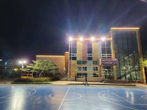 ¿µ¾Ï±º(±º¼ö ¿ì½ÂÈñ)ÀÌ ÃÖ±Ù¿¡ ¼³Ä¡ÇÑ ¿µ¾ÏÀ¾ÀÇ Ã»¼Ò³â¼ö·Ã°ü °Ç¹° ¶óÀÎ Á¶¸í°ú ½Ç¿Ü ³ó±¸Àå Á¶¸íÀÌ »ç¶÷µé¿¡°Ô ¾ÈÀüÇÔ, Áñ°Å¿ò µîÀ» Á¦°øÇϰí ÀÖ´Ù.