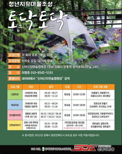 Åä(÷Ï)´ÚÅä(÷Ï)´Ú »ê¸²Ä¡À¯¸¶À» ÇÁ·Î±×·¥Àº ±èÇØ½Ã û³âģȵµ½Ã º¸Á¶±Ý °ø¸ð»ç¾÷ÀÇ Çϳª·Î ½Å¾î»ê ÀÚ¿¬½£ Ä·ÇÎÀå¿¡¼ ±èÇØ û³â(¸¸39¼¼ ÀÌÇÏ)µéÀ» ´ë»óÀ¸·Î ¿Ã 3¿ùºÎÅÍ ÁøÇàµÇ°í ÀÖ´Ù.