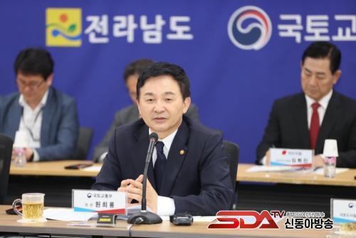 ÀÌ¾î ¡°¿ìÁֹ߻çü »ê¾÷Ŭ·¯½ºÅÍ ¹× ±¹°¡»ê¾÷´ÜÁö¿Í ¿¬°èÇÑ ¾ÈÁ¤ÀûÀΠöµµ ¼ö¼Ûü°è ±¸Ãà°ú ¹°·ù ¹× °ü±¤»ê¾÷ÀÇ °æÀï·Â °È¸¦ À§ÇØ °íÈµµ¾ç~(º¸¼º)¹ú±³¸¦ Àմ öµµ°¡ °Ç¼³µÉ ¼ö ÀÖµµ·Ï ¡®Á¦5Â÷ ±¹°¡Ã¶µµ¸Á ±¸Ãà °èȹ¡¯¿¡ À̸¦ ¹Ý¿µÇØ ÁÙ °Í¡±À» ¿øÈñ·æ ±¹ÅäºÎ Àå°ü¿¡°Ô °·ÂÇÏ°Ô °ÇÀÇÇß´Ù.