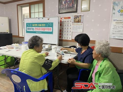 ÇѹæÆÀÀº º¸°Ç¼Ò ÇÑÀÇ»ç¿Í °£È£»ç ¹× º¸°ÇÁö¼Ò ÀÇ·áÁøÀ¸·Î ±¸¼ºµÆÀ¸¸ç ¸ÅÁÖ È¡¤¸ñ¿äÀÏ ÁÖ 2ȸ ÇԾȡ¤¹ý¼ö¸é ¸¶À»È¸°ü ¹× °æ·Î´çÀ» ¹æ¹®ÇÔ´Ï´Ù. Èûµç ³ó»çÀÏ·Î Ç㸮ÅëÁõ µî ¸¸¼ºÅëÁõÀ¸·Î ÀÎÇØ ÀÏ»ó»ýȰÀÌ ¾î·Á¿î ¾î¸£½ÅµéÀ» ´ë»óÀ¸·Î °Ç°»ó´ã ¹× Ç÷¾Ð¡¤Ç÷´ç°Ë»ç, ħ ½Ã¼ú, Çѹæ¾àÁ¦Åõ¾à, Áßdz¿¹¹æ ¹× »ýȰ½À°ü °³¼±À» À§ÇÑ º¸°Ç±³À° µî Æ÷°ýÀûÀÎ ÀǷἺñ½º¸¦ Á¦°øÇϸç Áֹε鿡°Ô Å« µµ¿òÀ» ÁÖ°í ÀÖ½À´Ï´Ù.
