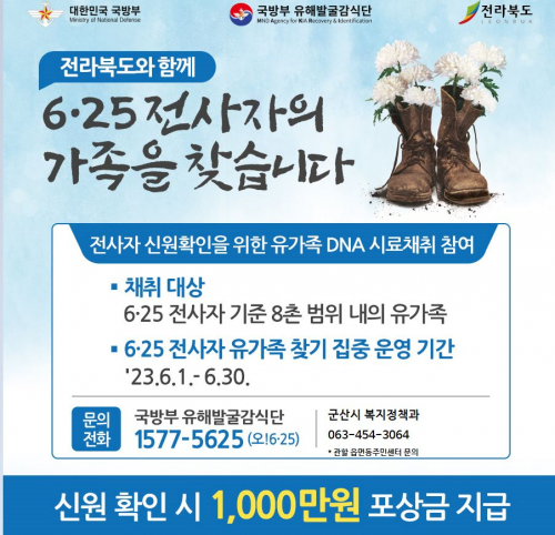 ½Ã °ü°èÀÚ´Â ¡°±Ý¹ø 6.25 Àü»çÀÚ À¯°¡Á· ã±â ÁýÁ߱Ⱓµ¿¾È ½Ã¹ÎµéÀÇ ¸¹Àº °ü½ÉÀ¸·Î ½Ã·áäÃë°¡ Àû±ØÀûÀ¸·Î ÀÌ·ïÁ® ±¹°¡¿¡ Çå½ÅÇÑ Àü»çÀںеéÀÌ °¡Á·ÀÇ Ç°¿¡¼ ºñ·Î¼Ò ¾È½ÄÀ» ´©¸± ¼ö ÀÖ°Ô µÇ±â¸¦ ¹Ù¶õ´Ù¡±°í ÀüÇß´Ù.