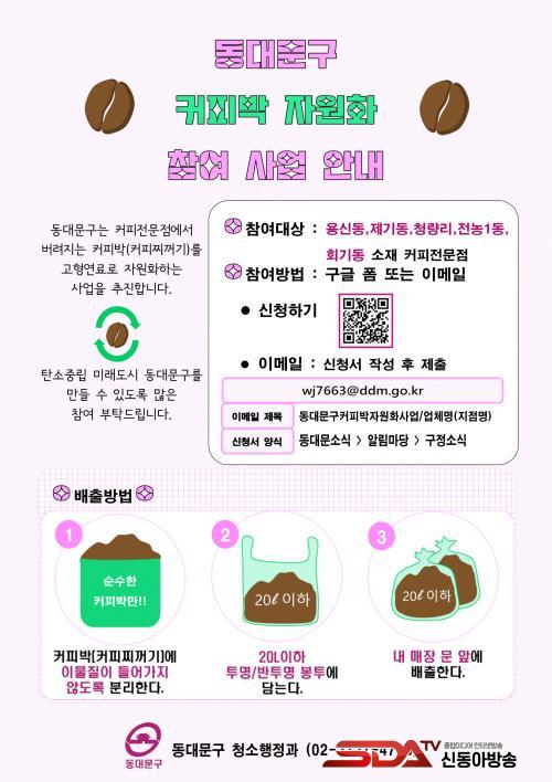 ÀÌ¿¡ µ¿´ë¹®±¸´Â °ü³» 5°³µ¿(¿ë½Å, Á¦±â, û·®¸®, Àü³ó1, ȸ±âµ¿)¿¡ À§Ä¡ÇÑ Ä¿ÇÇÀü¹®Á¡À» ´ë»óÀ¸·Î ¡®Ä¿ÇÇ¹Ú ¹«»ó¼ö°Å »ç¾÷¡¯À» È«º¸Çϰí Èñ¸Á¾÷¼ÒÀÇ ½ÅûÀ» ¹Þ¾Æ ¡®Ä¿ÇÇ¹Ú ÀÚ¿øÈ »ç¾÷¡¯À» ÃßÁøÇÏ¿© »ýȰÆó±â¹° ¹èÃâ·® ¹× 󸮺ñ¿ëÀ» ÁÙÀÓÀ¸·Î½á ź¼ÒÁ߸³ ½Çõ¿¡ ±â¿©Çϰڴٴ ¹æÄ§ÀÌ´Ù.