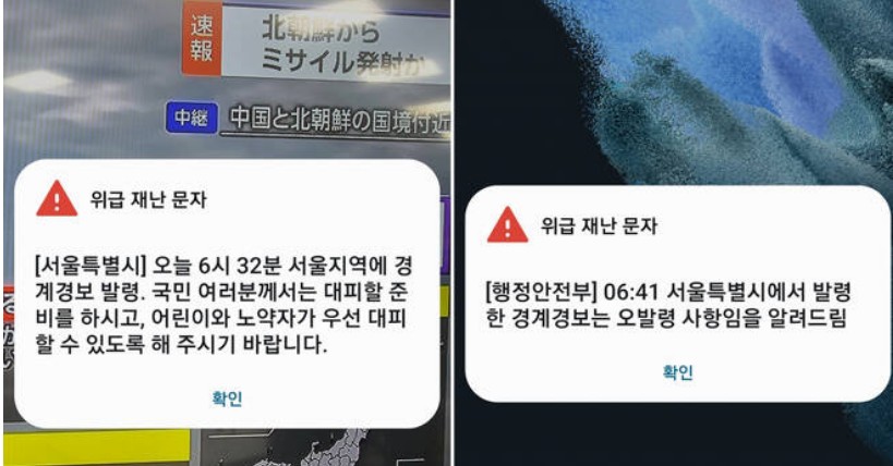 ÀϺ»µµ »õº®¿¡ °æº¸½Ã½ºÅÛÀ» ¹ß·ÉÇß´Ù´Â °ÍÀ¸·Î, ÀϺ» Á¤ºÎ°¡ J-ALERTÀ» ¹ß·ÉÇÏ¸é¼ ¡®ºÏÇÑÀÌ ¿ÀŰ³ª¿Í ¹æÇâÀ¸·Î ¹Ì»çÀÏÀÌ ¹ß»çÇß´Ù. °Ç¹° ¾ÈÀ̳ª ÁöÇÏ·Î ´ëÇÇÇ϶󡯴 °øÁö°¡ °°Àº ½Ã°¢ ³ª¿Ô´Ù´Â °ÍÀÌ´Ù.