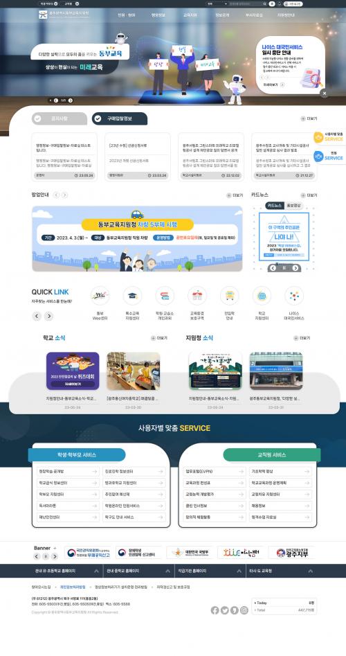 1ÀÏ µ¿ºÎ±³À°Áö¿øÃ»¿¡ µû¸£¸é, À̹ø °³ÆíµÈ ȨÆäÀÌÁö´Â »ç¿ëÀÚ Áß½ÉÀÇ ¸ÞÀÎÈ¸é µðÀÚÀΰú ±â´É¿¡ ÁßÁ¡À» µÎ°í Àüü ¸Þ´º¸¦ Æí¸®Çϰí Á÷°üÀûÀ¸·Î ±¸¼ºÇß´Ù. »ç¿ëÀÚµéÀº »çÁø°ú ¾Ö´Ï¸ÞÀÌ¼Ç À̹ÌÁö¸¦ Á¶ÇÕÇÑ Âü½ÅÇÑ µðÀÚÀÎÀ¸·Î ¡®¹Ì·¡·Î °¡´Â µ¿ºÎ±³À°¡¯À» Ä£¼÷ÇÏ°í ½±°Ô ÀÌÇØÇÒ ¼ö ÀÖ°Ô µÆ´Ù.