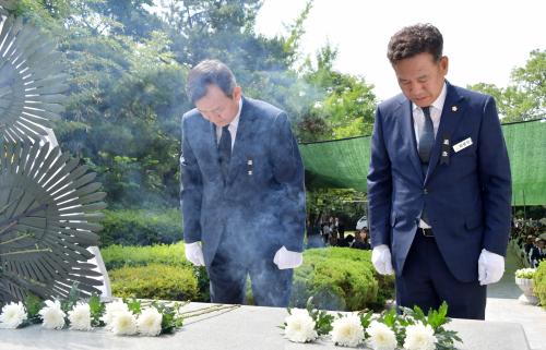 À̳¯ Ãß³ä½ÄÀº ¡®´ëÇѹα¹À» ÁöÄѳ½ ´ç½ÅÀÇ Èñ»ýÀ» ±â¾ïÇÕ´Ï´Ù¡¯¶ó´Â ½½·Î°ÇÀ¸·Î ´ëÇѹα¹ÀÇ ¿À´ÃÀ» ÀÖ°Ô ÇÑ ¼ø±¹¼±¿°ú È£±¹¿µ·ÉÀÇ Èñ»ýÀ» Ã߸ðÇÏ°í ¾Ö±¹Á¤½ÅÀ» ¼±¾çÇϱâ À§ÇØ ´ã¾ç±º¼ö, º¸ÈÆ´ÜüÀå, ÀÇÀå ¹× ÀÇ¿ø, ±¹°¡À¯°øÀÚ ¹× À¯Á·, ±â°üÀå, »çȸ´ÜüÀå, Çлý, °ø¹«¿ø µî 300¿© ¸íÀÌ Âü¼®ÇÑ °¡¿îµ¥ ÁøÇàµÆ´Ù.