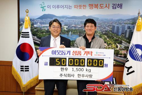 [½Åµ¿¾Æ¹æ¼Û´º½º=ÃÖ¼ÛÈ­±âÀÚ] ±èÇØ½Ã´Â Áö³­ 13ÀÏ ÁÖ½Äȸ»ç ÇÑ¿ì»ç¶û¿¡¼­ ÇÑ¿ì°í±â 1,500kg(5,000¸¸¿ø »ó´ç)À» ±âŹÇß´Ù°í 14ÀÏ ¹àÇû´Ù.