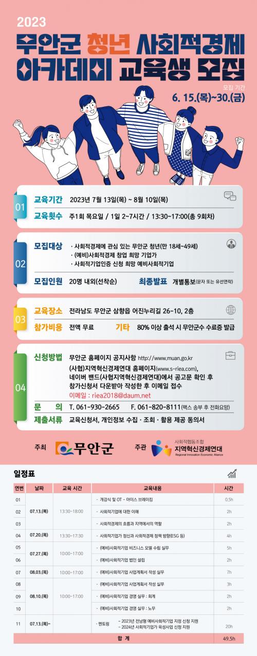 [½Åµ¿¾Æ¹æ¼Û=±è±¤½Ä±âÀÚ] Àü³² ¹«¾È±º(±º¼ö ±è»ê)Àº û³â »çȸÀû°æÁ¦ ±â¾÷ À°¼ºÀ» À§ÇÑ ¾ÆÄ«µ¥¹Ì ±³À°»ýÀ» ¿À´Â 6¿ù 30ÀϱîÁö ¸ðÁýÇÑ´Ù°í ¹àÇû´Ù.