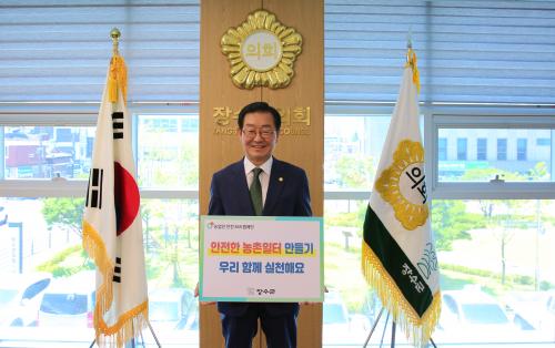 ÀåÁ¤º¹ ÀÇÀåÀº ¡°³ó¾÷ ÀÛ¾÷ ÇöÀå¿¡¼ ¹ß»ýÇÒ ¼ö ÀÖ´Â ¾ÈÀü»ç°í¸¦ ¿¹¹æÇϱâ À§Çؼ´Â ¾ÈÀü¼öÄ¢À» öÀúÈ÷ ÁöÄÑ¾ß ÇÑ´Ù¡±°í °Á¶ÇÑ ÈÄ, ¡°Àå¼ö±º¹Î ¿©·¯ºÐµéÀÇ Àû±ØÀûÀÎ µ¿Âü°ú °ü½ÉÀ» °¡Á®´Þ¶ó¡±°í È£¼ÒÇß´Ù.