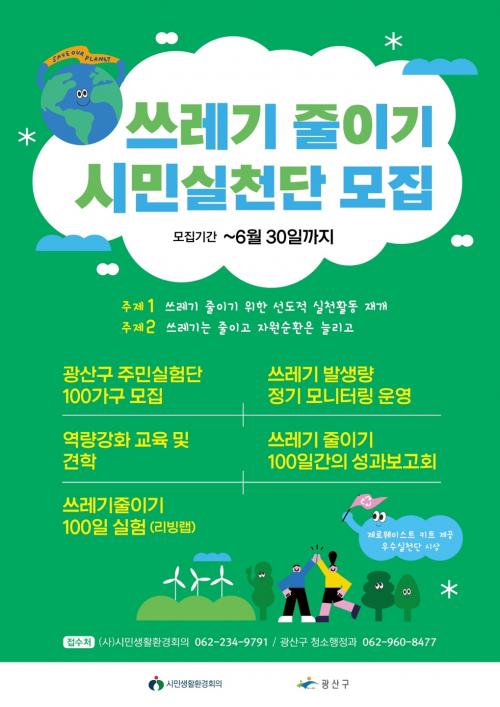 ±¤»ê±¸´Â ½Ã¹Î½Çõ´Ü Ȱµ¿ ±â°£ Âü¿©ÀÚ °¡Á¤¿¡¼ ¹ß»ýÇÏ´Â ¾²·¹±â ¹ß»ý·®ÀÇ ¸ð´ÏÅ͸µÇϰí, 100ÀÏ ÈÄ ¾²·¹±â °¨·® Á¤µµ¿¡ µû¶ó ½Ã»óÇÒ °èȹÀÌ´Ù.