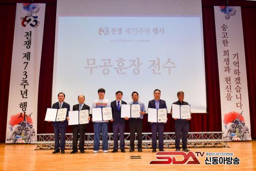 ƯÈ÷ 6¸íÀÇ 6․25 ÂüÀü¿ë»çµéÀÇ ¹«°øÈÆÀåÀ» À¯Á·µé¿¡°Ô Àü´ÞÇÏ´Â Àü¼ö½Ä°ú ÂüÀü¿µ¿õµéÀÇ »çȸÀû Á¸°æ½É°ú »ó¡¼ºÀ» ´ãÀº Á¦º¹ Âø¿ë½ÄÀ» ¿­¾î ±¹°¡¸¦ À§ÇÑ °øÇå°ú Èñ»ý¿¡ °¨»ç¸¦ ÀüÇß´Ù.
