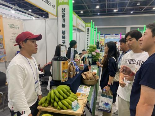 ¹Ù³ª³ª, ±¸¾Æ¹Ù µî ¾Æ¿´ë ÀÛ¹°À» Àç¹èÇϴ û³â Èİè³ó¾÷ÀÎ, º¸¸®¸¦ Àç¹èÇØ ¼öÁ¦ ¸ÆÁÖ¸¦ °¡°øÇÏ´Â ±Í³ó û³â ³ó°¡°¡ º»ÀεéÀÌ »ý»êÇÑ Á¦Ç°À» ¹Ú¶÷ȸÀå¿¡ Á÷Á¢ ³ª¿Í ¼Ò°³, ¼öµµ±Ç¿¡ °ÅÁÖÇÏ´Â µµ½Ã¹Îµé¿¡°Ô´Â »ý¼ÒÇÒ ¼ö Àִ ǰ¸ñµéÀ» È«º¸ÇÑ °ÍÀÌ ÁÖÈ¿Çß´Ù.