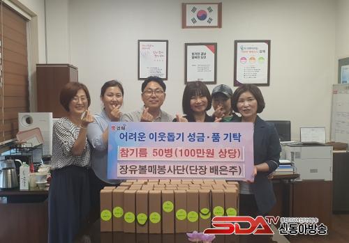 [½Åµ¿¾Æ¹æ¼Û´º½º=¾çÇýÁö±âÀÚ] ±èÇØ½Ã ÀåÀ¯2µ¿ÇàÁ¤º¹Áö¼¾ÅÍ¿¡¼­´Â Áö³­ 6¿ù 26ÀÏ ÀåÀ¯º¼¸ÅºÀ»ç´Ü(´ÜÀå ¹èÀºÁÖ)¿¡¼­ °ü³» ¾î·Á¿î ÀÌ¿ô¿¡°Ô Àü´ÞÇØ ´Þ¶ó¸ç 100¸¸¿ø »ó´çÀÇ Âü±â¸§ 50º´À» ±âŹÇß´Ù°í ¹àÇû´Ù.